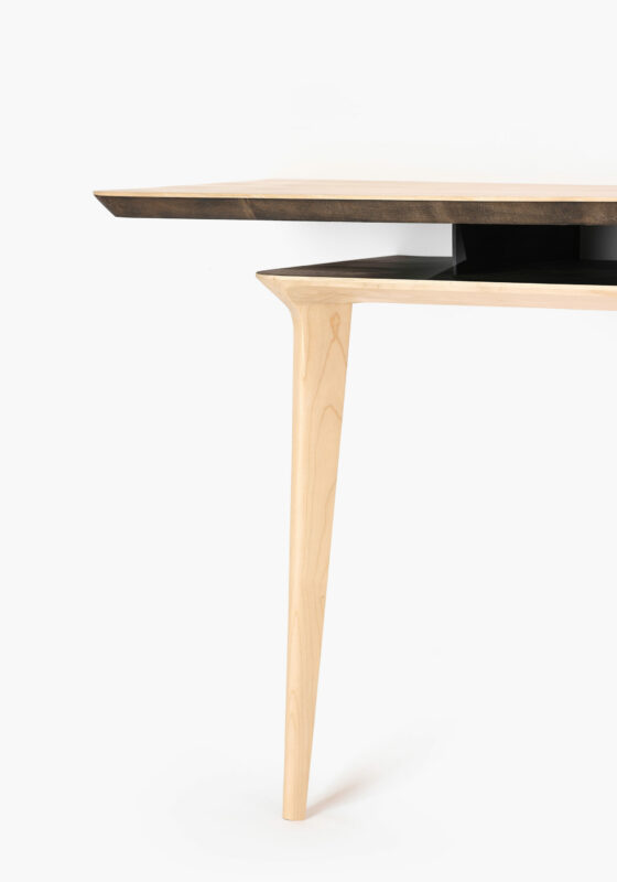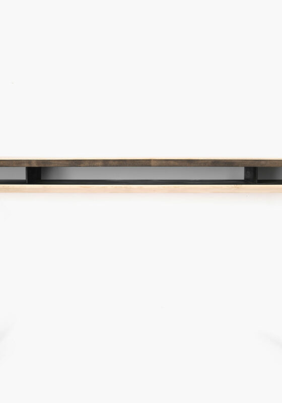 De l’anglais « floated », FLOA fait référence à la légèreté d’un élément en lévitation. Ici, le plateau supérieur semble flotter au-dessus du bureau, créant ainsi la fonction de la niche. Le traitement par le contraste de couleur renforce l’impression de suspension qui s’en dégage, amenant ainsi une grande légèreté, et permettant au meuble de se trouver au milieu de la pièce, sans visuellement l’encombrer.